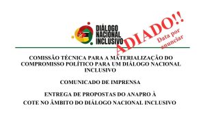 Maputo, 06 de Janeiro de 2026. No âmbito da implementação do Diálogo Nacional Inclusivo, a Comissão Técnica (COTE), criada pela Lei n.º 1/2025, de 11 de Abril, convida os órgãos