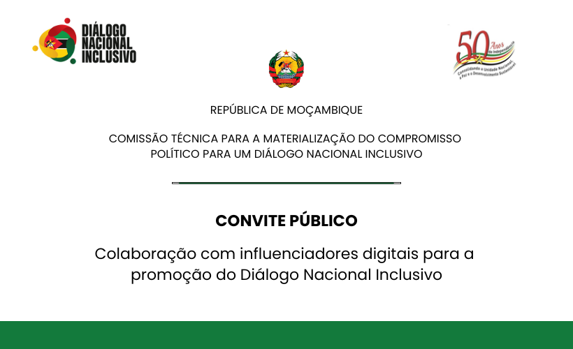 Maputo, 30 de Março de 2026 – No âmbito da implementação do Diálogo Nacional Inclusivo, a Comissão Técnica (COTE), criada pela Lei n.º 1/2025, de 11 de Abril, convida os