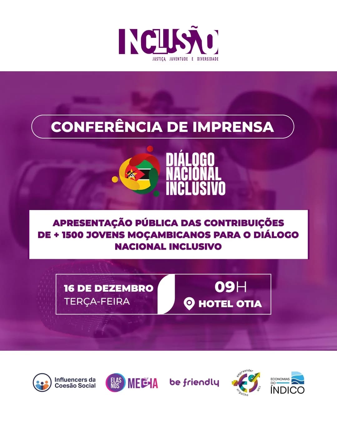 No âmbito dos debates promovidos pela ComissãoTécnica (COTE) do Diálogo Nacional Inclusivo, terá lugar, no dia 16 de Dezembro de 2025, às 09:00 horas, em Maputo, uma Mesa-Redonda subordinada ao tema “Reforma Fiscal”. Os oradores serão Adriano Nuvunga e Gift Essinalo com a moderação de Maria Virgínia Sousa Videira.