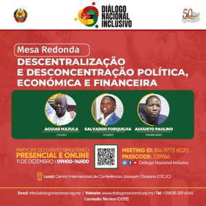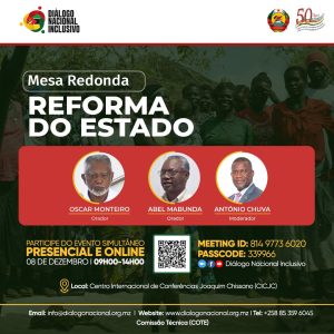 No âmbito dos debates promovidos pela ComissãoTécnica (COTE) do Diálogo Nacional Inclusivo, terá lugar, no dia 11 de Dezembro de 2025, às 09:00 horas, em Maputo, uma Mesa-Redonda subordinada ao